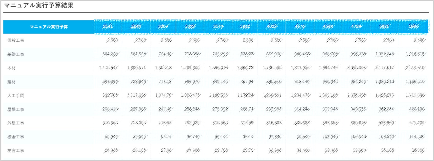 「売りたい価格」「得たい利益」などから、自社住宅を販売する際の最適な実行単価を算出します。全国4,000社を超える会員工務店の実行予算と徹底比較することで、仕入れや外注費の適正価格を把握した上での建設的な交渉によりコストダウンを図ります。