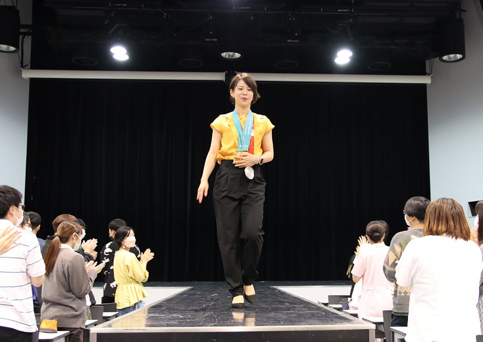 また髙木さんの大ファンであり医療の道に進むため、別の分野から視能訓練士を目指して名古屋医専に今年入学した学生から「これからの目標」を聞かれた髙木さんは、「新しい道に進むことはとても勇気がいることです。ただ自分自身で決断した道だからこそ、選択には後悔がないと思うし、これからどんなに辛いことがあっても、貫けると信じています。私はあなたが選んだ道を応援しています!」と力強いエールをいただきました。