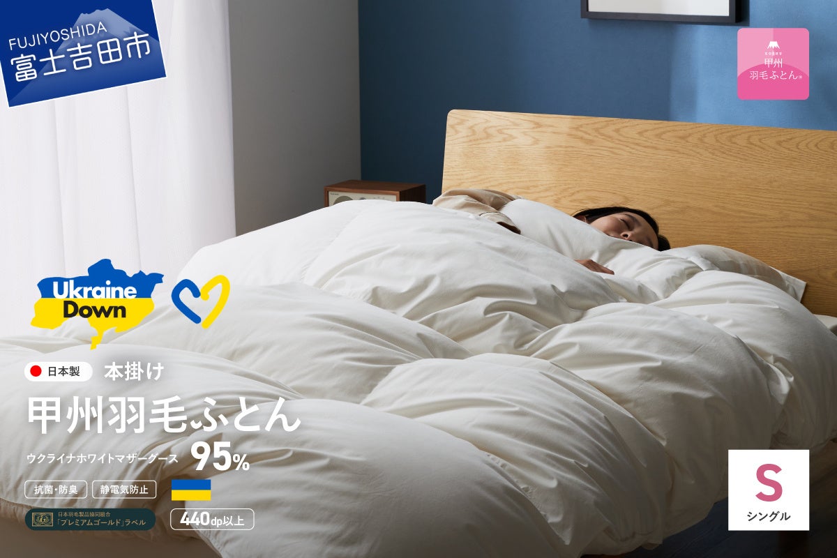 【甲州羽毛本掛けふとん】ウクライナホワイトマザーグース 95%抗菌の糸 ホワイト(シングル) ふとんカバー付