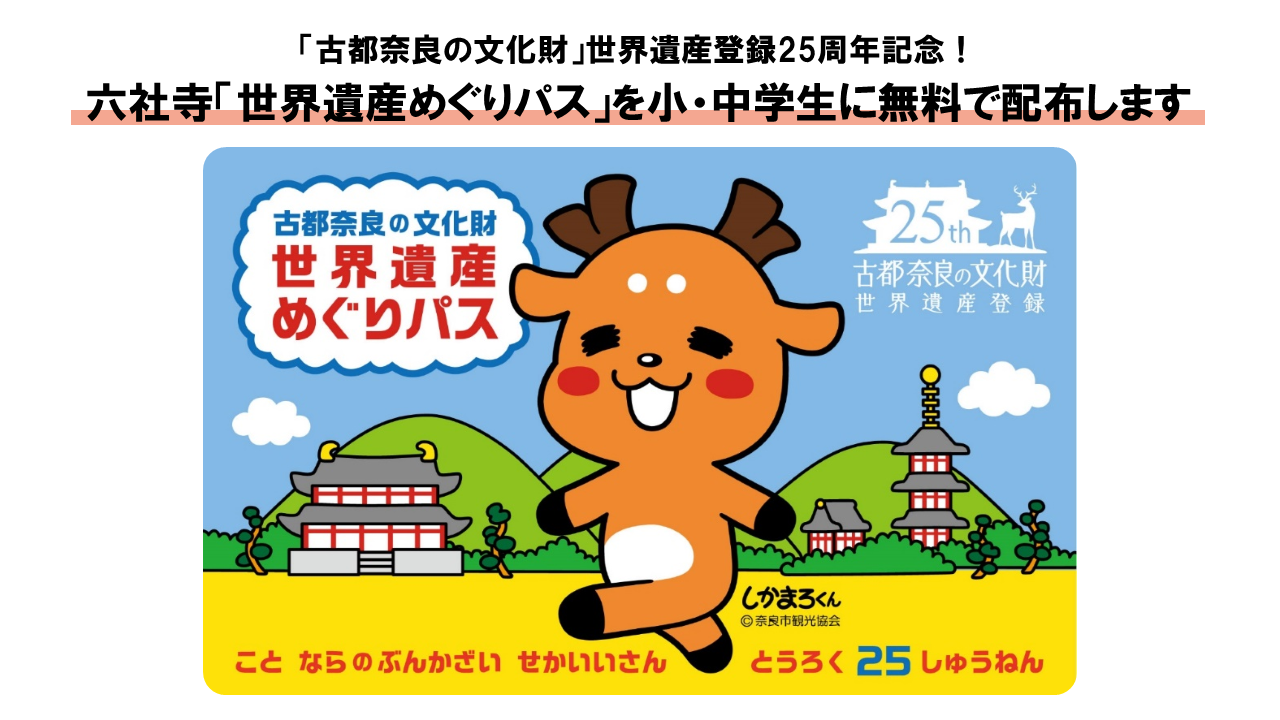 ◆「古都奈良の文化財」世界遺産登録25周年記念事業の一環として、夏休みに合わせた小・中学生無料拝観「世界遺産めぐりパス」の発行を先行実施。