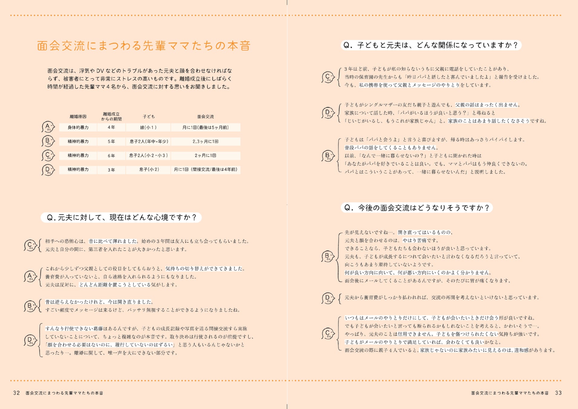 養育費、親権、面会交流、子育てをしながらの求職活動…夫婦関係に困難を抱え、離婚を考えるお母さん“プレ・シングルマザー”は、離婚を進めていく中で子連れ特有のたくさんの問題に直面します。本書を読むことで、離婚を経験した先輩たちの実体験に基づく、離婚前後に直面する具体的な問題と解決策について知ることができる一冊になっています。