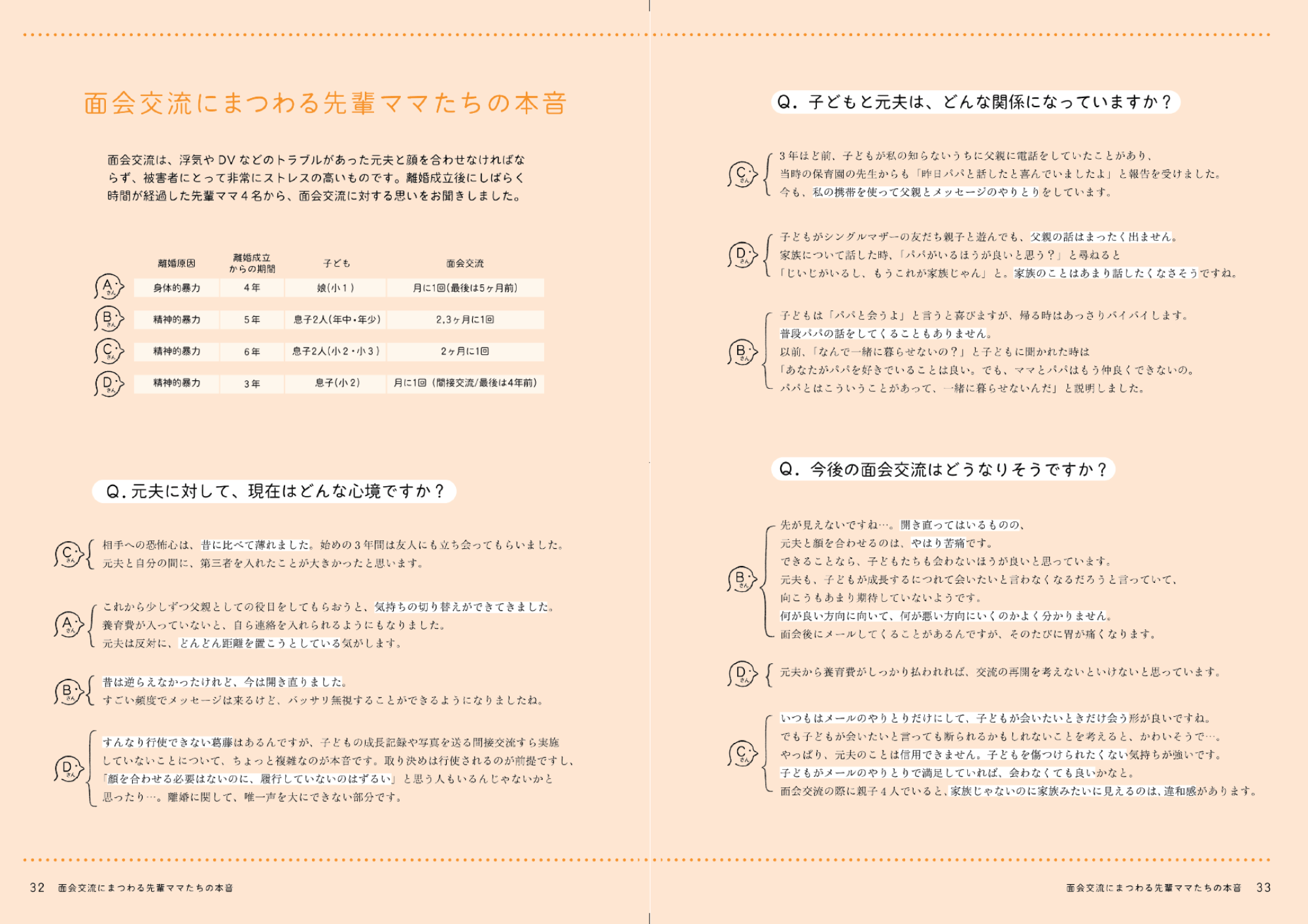 養育費、親権、面会交流、子育てをしながらの求職活動…夫婦関係に困難を抱え、離婚を考えるお母さん“プレ・シングルマザー”は、離婚を進めていく中で子連れ特有のたくさんの問題に直面します。本書を読むことで、離婚を経験した先輩たちの実体験に基づく、離婚前後に直面する具体的な問題と解決策について知ることができる一冊になっています。