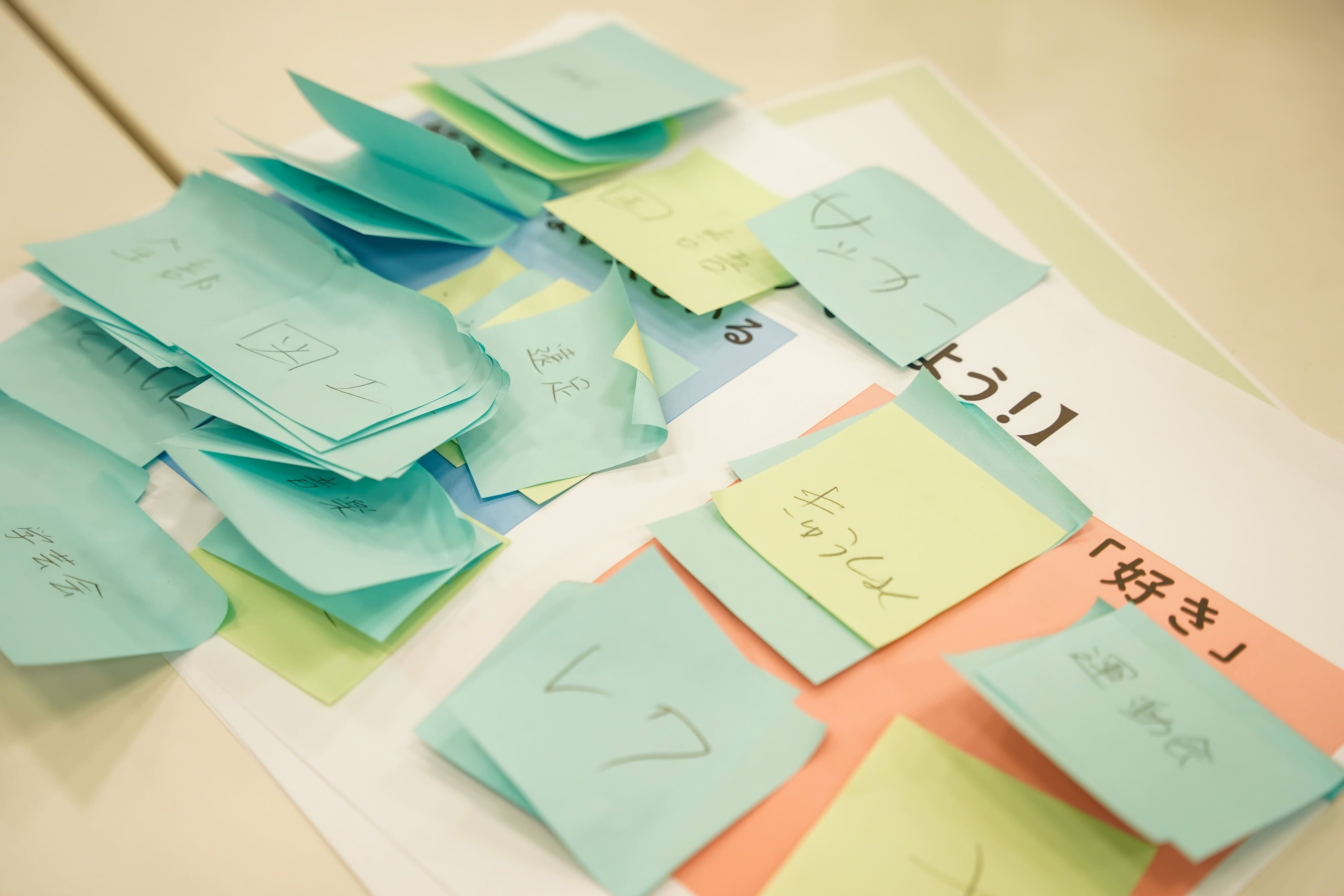 色々な理想の学校が紙に書かれていました。