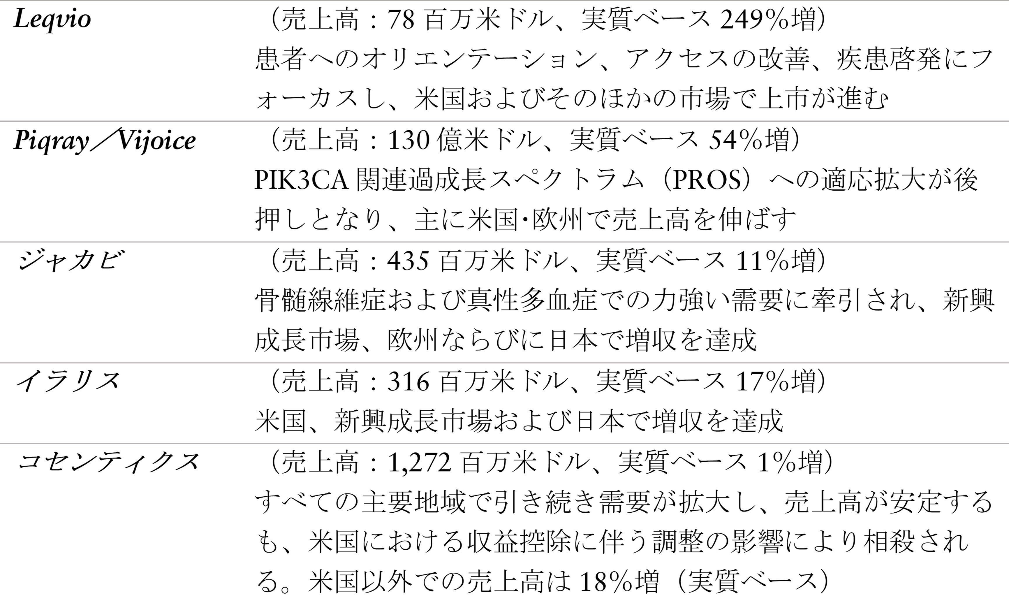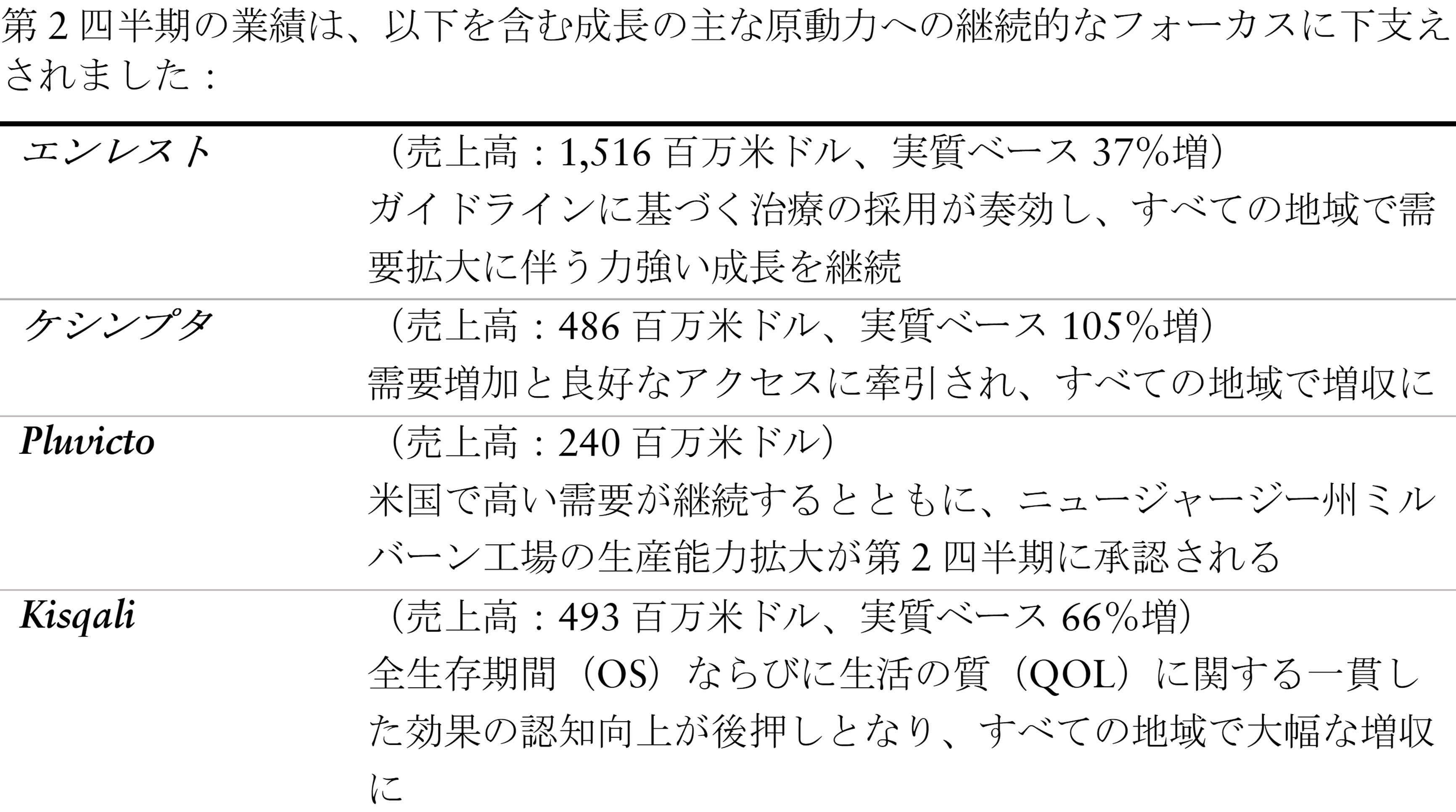 成長は、エンレスト、ケシンプタ、Pluvicto、Kisqaliの力強い業績の継続に牽引される