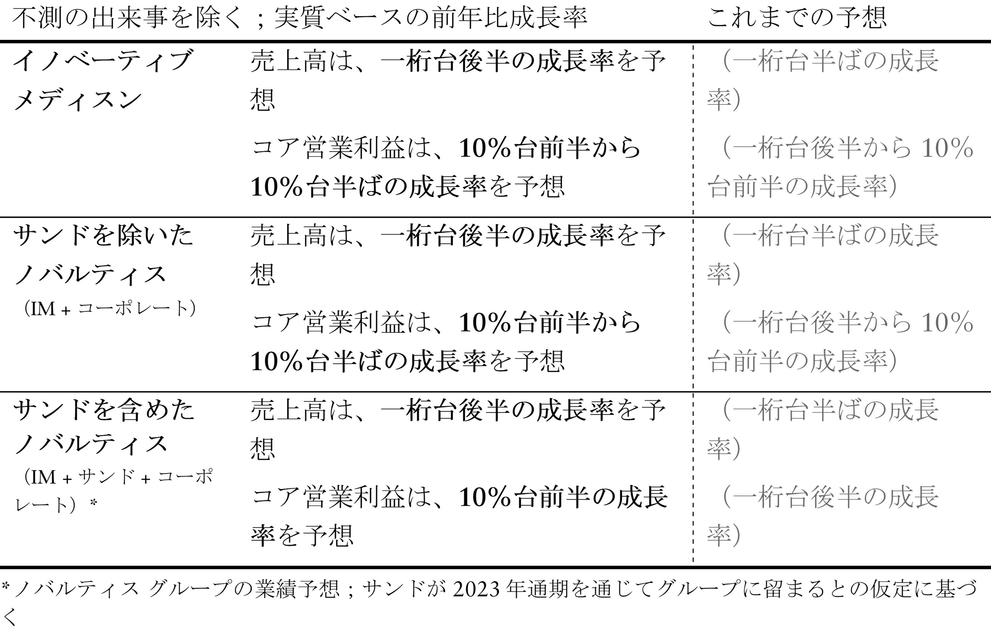 ノバルティス グループのコア営業利益は、10%台前半の成長率を予想(一桁台後半の成長率から上方修正)