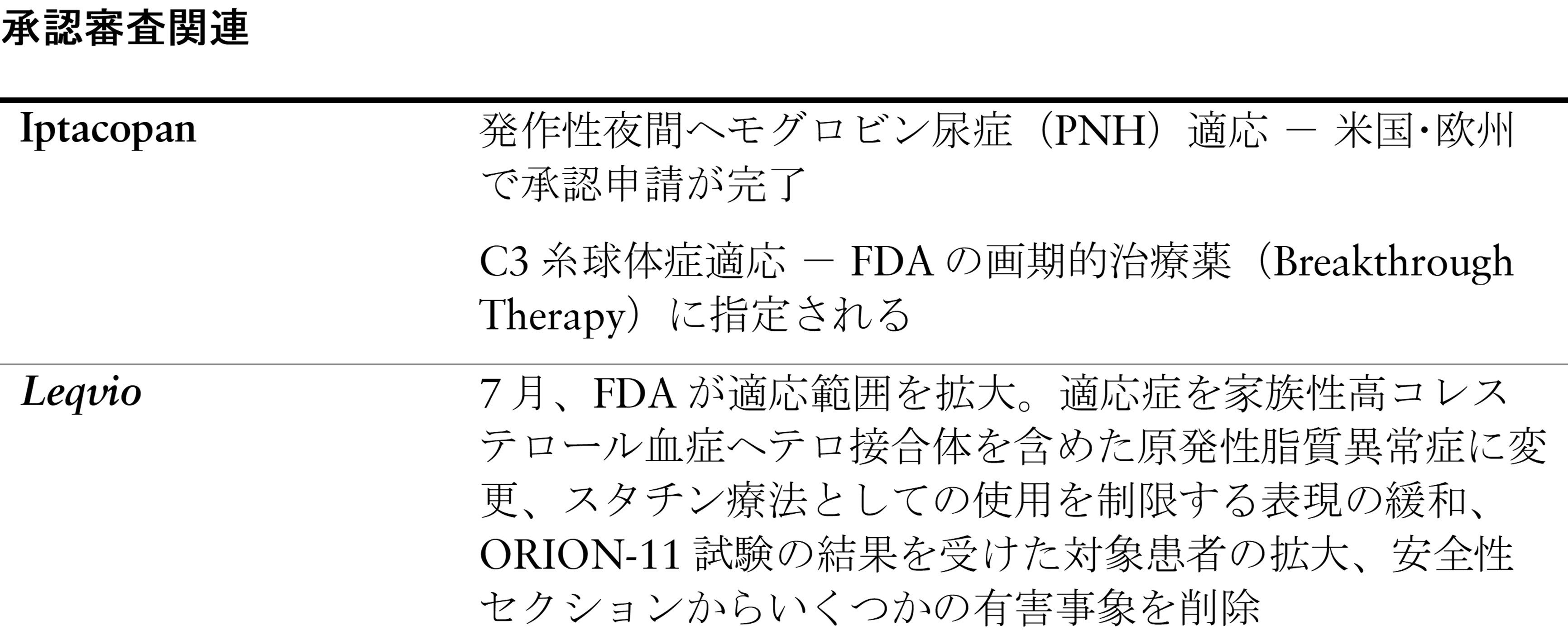 研究開発関連のアップデート ― 第2半期の主な進捗
