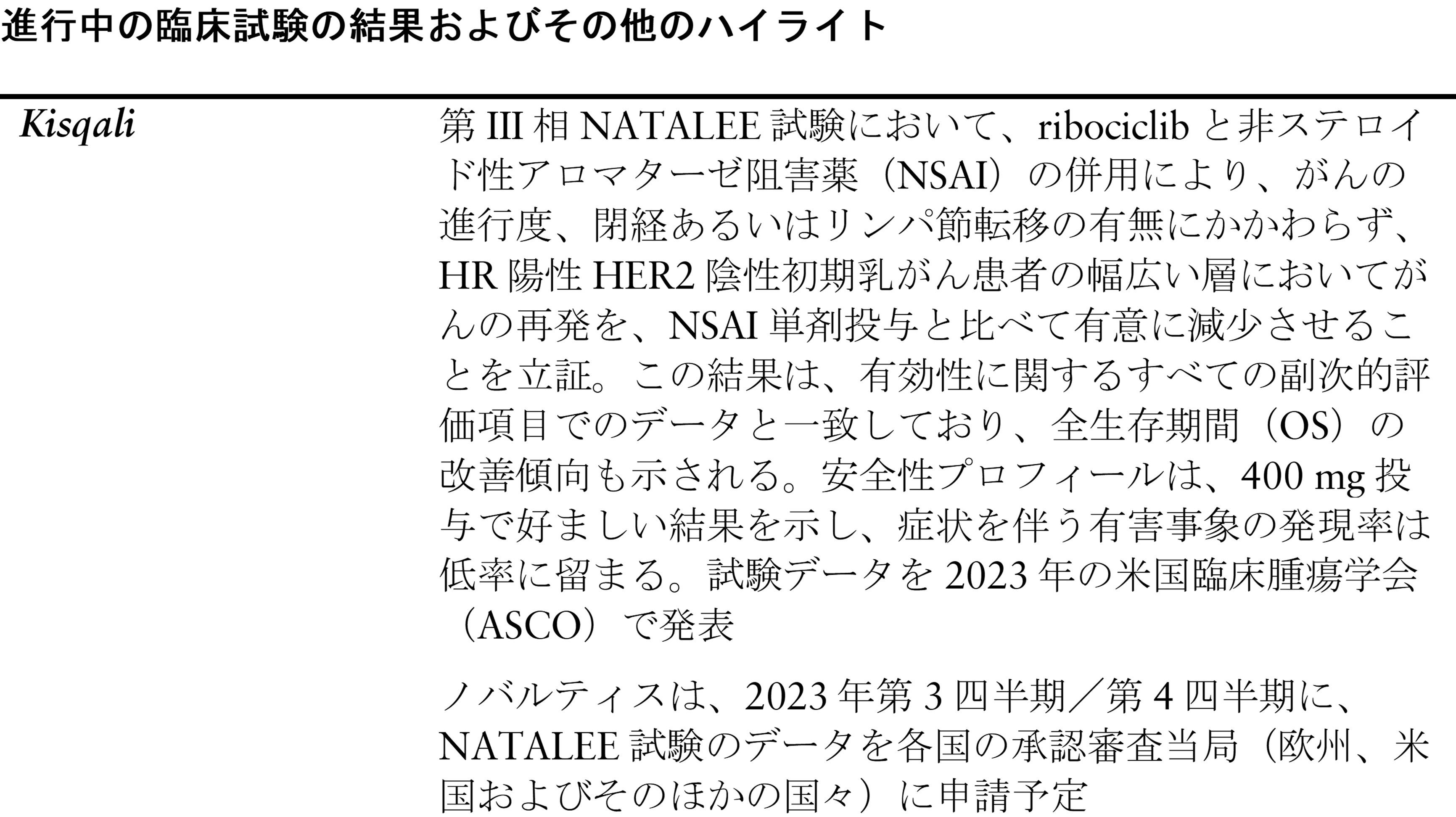 Kisqali – 米国臨床腫瘍学会(ASCO)において、初期乳がん(eBC)に対する臨床的に意義のある試験データ(NATALEE試験)を発表