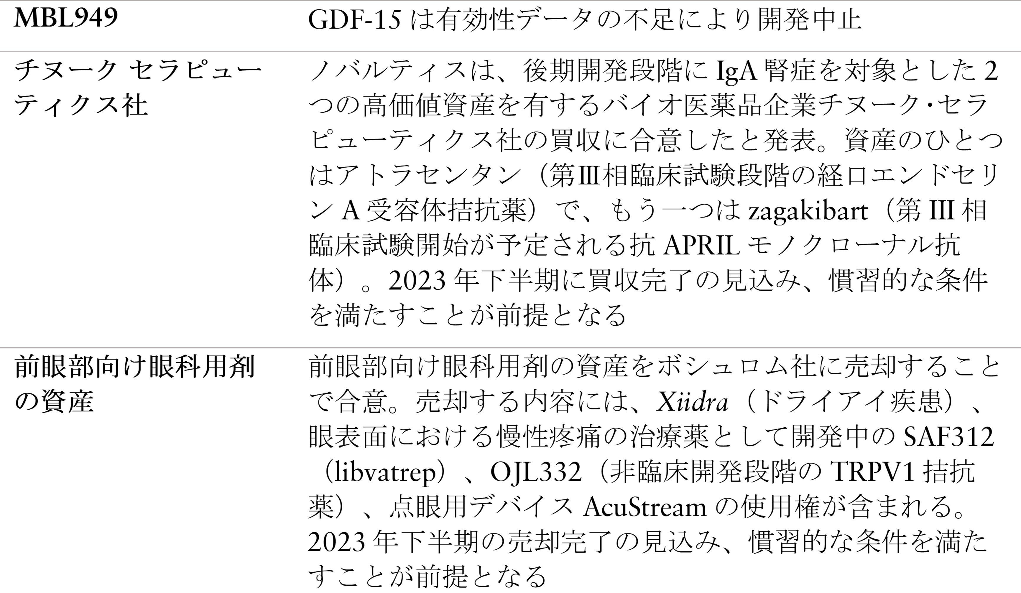 ■チヌーク社の買収ならびに前眼部向け眼科用剤の資産売却5)を含めた開発ポートフォリオの戦略的合理化を継続