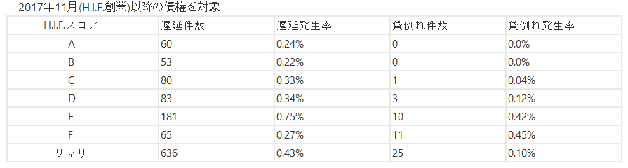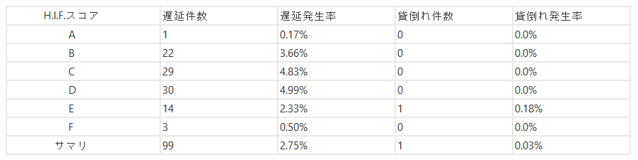 ※H.I.F.スコア毎の「遅延率」「貸倒率」は下図2のとおりです。