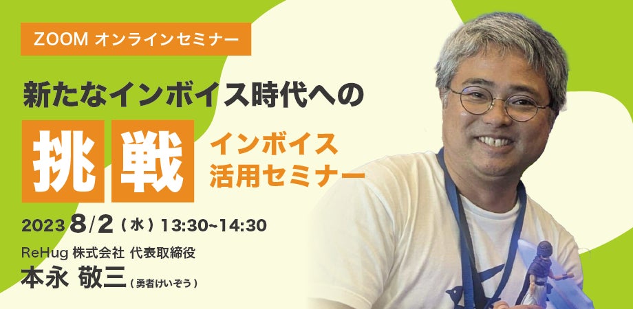 2023年10月1日新たにスタートする「インボイス制度」は、ビジネスの日常を一新する可能性があります。この変化をただの「面倒」と捉えるのではなく、効率的なツールとしてインボイスの魅力を最大限に引き出す方法を知りたくはありませんか?本セミナーでは、 ReHug株式会社 本永さんを招き、インボイス活用について、詳しく解説いただきます。