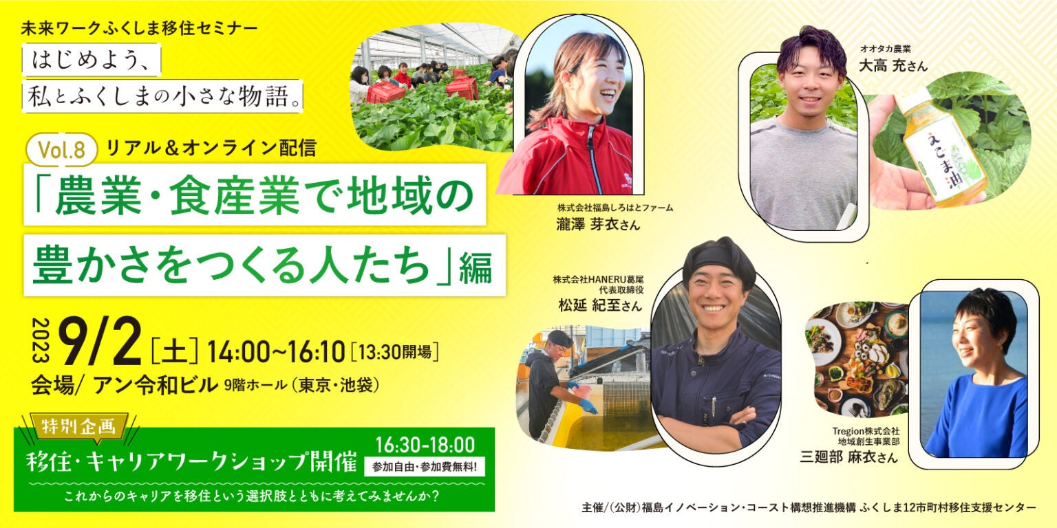 ●未来ワークふくしま移住セミナー vol.8「農業・食産業で地域の豊かさをつくる人たち」編 9月2日開催。