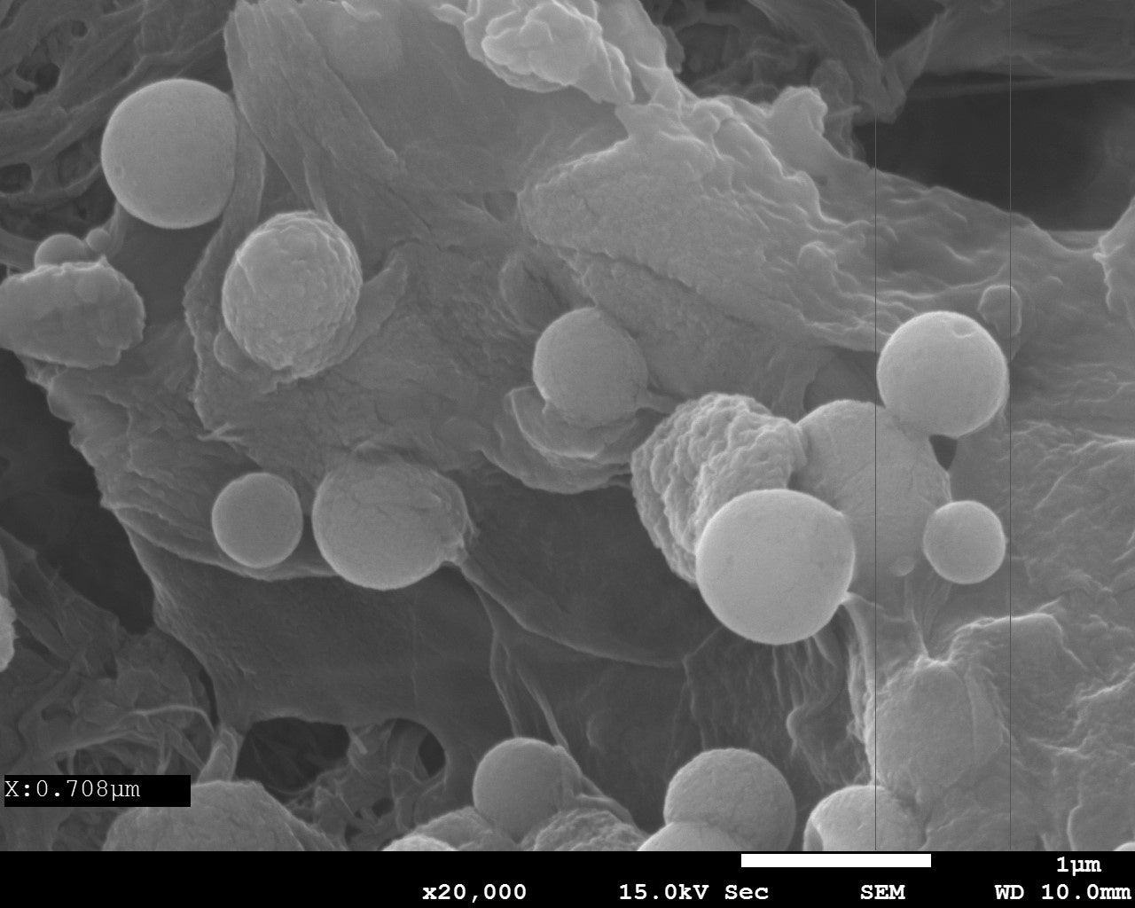 合成したアルギン酸ボールのSEM写真