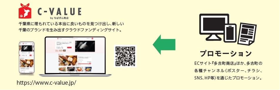 サポーターは、「C-VALUEサイト内での購入」という形で起案者を応援し、そのリターンとして商品やサービスを受け取ることができます。そして起案者は、その応援してもらった資金をもとに千葉発の新商品・新サービス・新プロジェクトの実現へ向け取り組んでいきます。