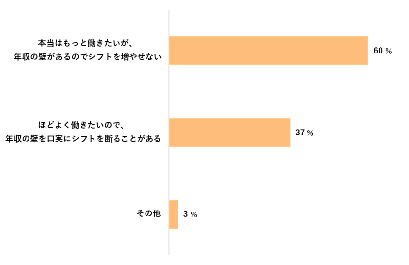 勤務時間を調整する人の6割が「本当はもっと働きたいが、年収の壁がありシフトを増やせない」