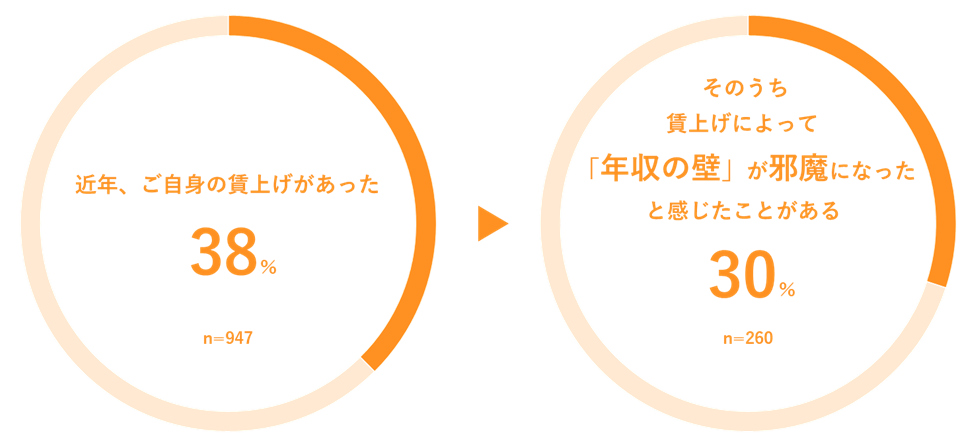 近年、賃上げがあった人で「年収の壁」が邪魔になったという回答は30%