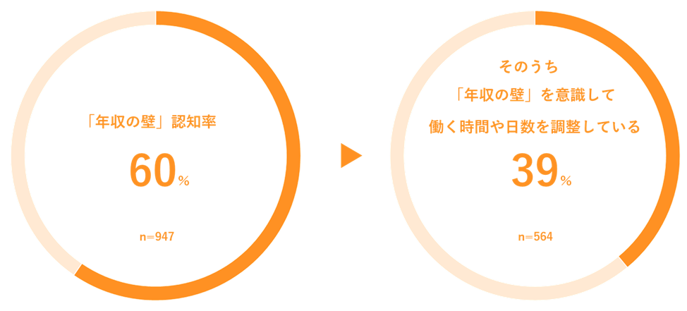 「年収の壁」の認知率は60%。うち39%が年収の壁を意識して働く時間や日数を調整している