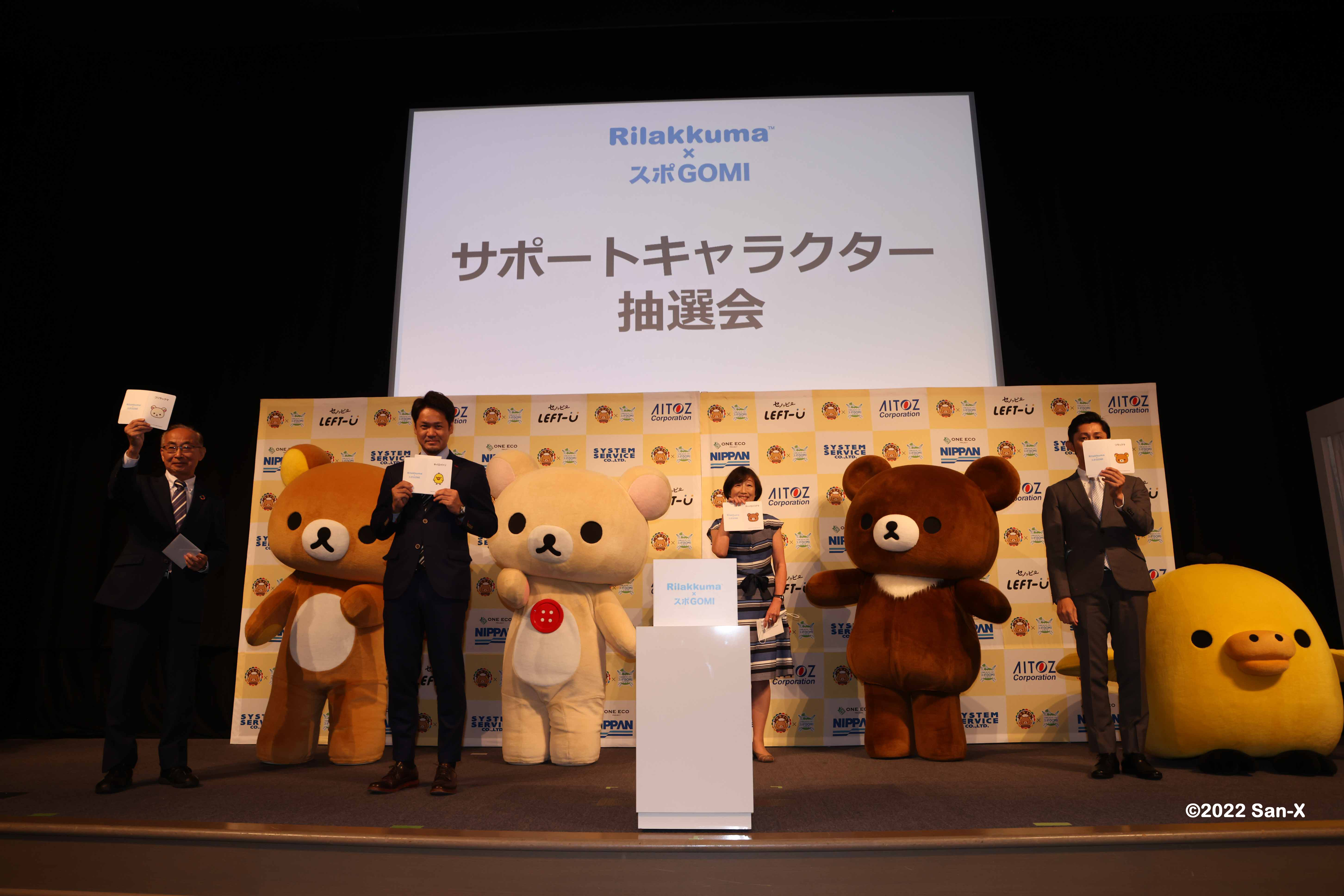 調印式では、当社より本体会への想いを述べさせていただき、無事に式が執り行われました。式終了後には、各協賛企業と「リラックマ×スポGOMI広報主任」として活躍するサポートキャラクターとのペアリング抽選会も行われ、次のとおり決定いたしました。