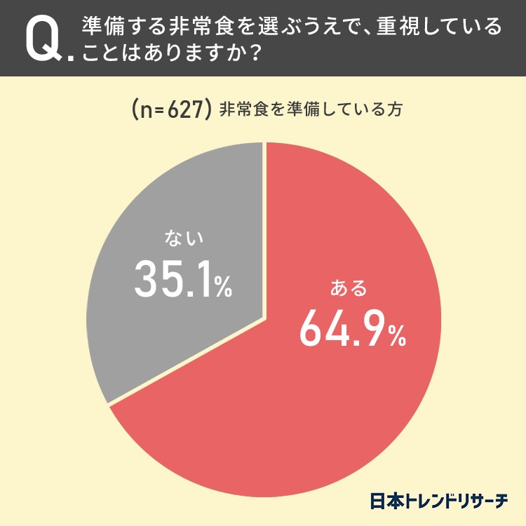 ■64.9%が「準備する非常食を選ぶうえで、重視していることはある」と回答