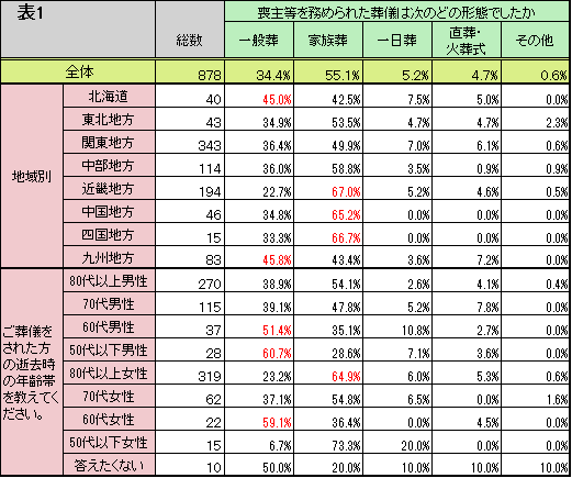 ・ しかし、これを地域別と逝去された方の年齢でみていくと、表1の通り、違った形態が主流であったことがわかる