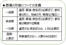 1. 喪主(喪主に準じた立場の方を含む、以下「喪主等」)を務められた葬儀の形態