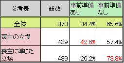 ※参考までに喪主の立場の方と喪主に準じた立場の方で区分してみると、喪主の立場の方の事前準備比率