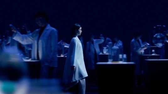 白衣をまとった小芝風花さん。強い眼差しで「世の中や人を思う気持ち…」と語り始めます。神秘的な空間の中、静止した研究員たちの間を颯爽と歩き、その先で襲いかかる「巨大な手」に対峙します。そして「一歩踏み出す勇気があれば!」とフラスコを掲げ、「世界は変えられる」と立ち止まっている研究員たちを鼓舞。「さあ、挑戦しよう!」の言葉と同時に、光に向かって研究員たちと共に走り出します。最後は、「さあ、熱くなれ。シーシーアイ。」とシーシーアイが持つ研究開発への熱意、マインドを伝えます。