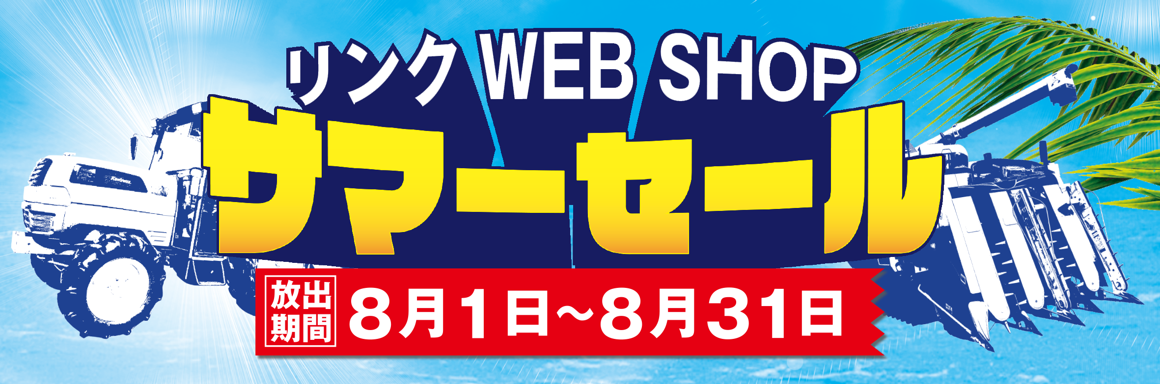中古農機具の買取販売専門店「農機具王」を全国で35店舗展開している株式会社リンク(本社:滋賀県近江八幡市、代表取締役:濱田 義郎)が運営するヤフオク!ストア「リンク WEB SHOP」にて、2023年8月1日から8月31日までの期間中、サマーセールを開催いたします。