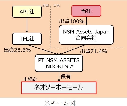 当社は、日本でNSM Assets Japan合同会社(以下、「NSMAJ社」)を、インドネシアでPT NSM ASSETS INDONESIA(以下、「NSM社」)をそれぞれ設立し、その後、2023年9月にNSMAJ社を通じてNSM社に出資することとしています。そのうえで、NSM社はTMI社(APL社※1の子会社)から本施設を取得するとともに、出資を受け入れる予定です。