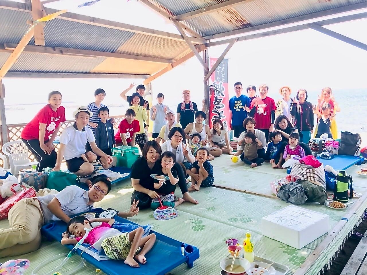 このイベントのはじまりは2014年。祖母が毎年夏は海の家を運営している、というお子さんがいました。でも、そのお子さんもご家族も、生まれてから一度も祖母がいる海の家に行ったことがありませんでした。聞けば、自宅から海水浴場までは車で20分ほどの距離。でも、家族にとっては呼吸器が必要な子どもを連れて海に行くのは、夢のような話だと知りました。当時、団体としては、子どもたちとの夏休みをどう過ごそうか、何をしようかと考えている時でした。”だったらおばあちゃんのいる海の家で、みんなで海水浴を楽しもう!”、子どもたち、家族、団体にとって、大きなチャレンジのはじまりでした。以降、毎年の恒例イベントとなっていましたが、コロナ禍中はイベントを中止せざるおえず、今回は3年ぶりの開催となります。