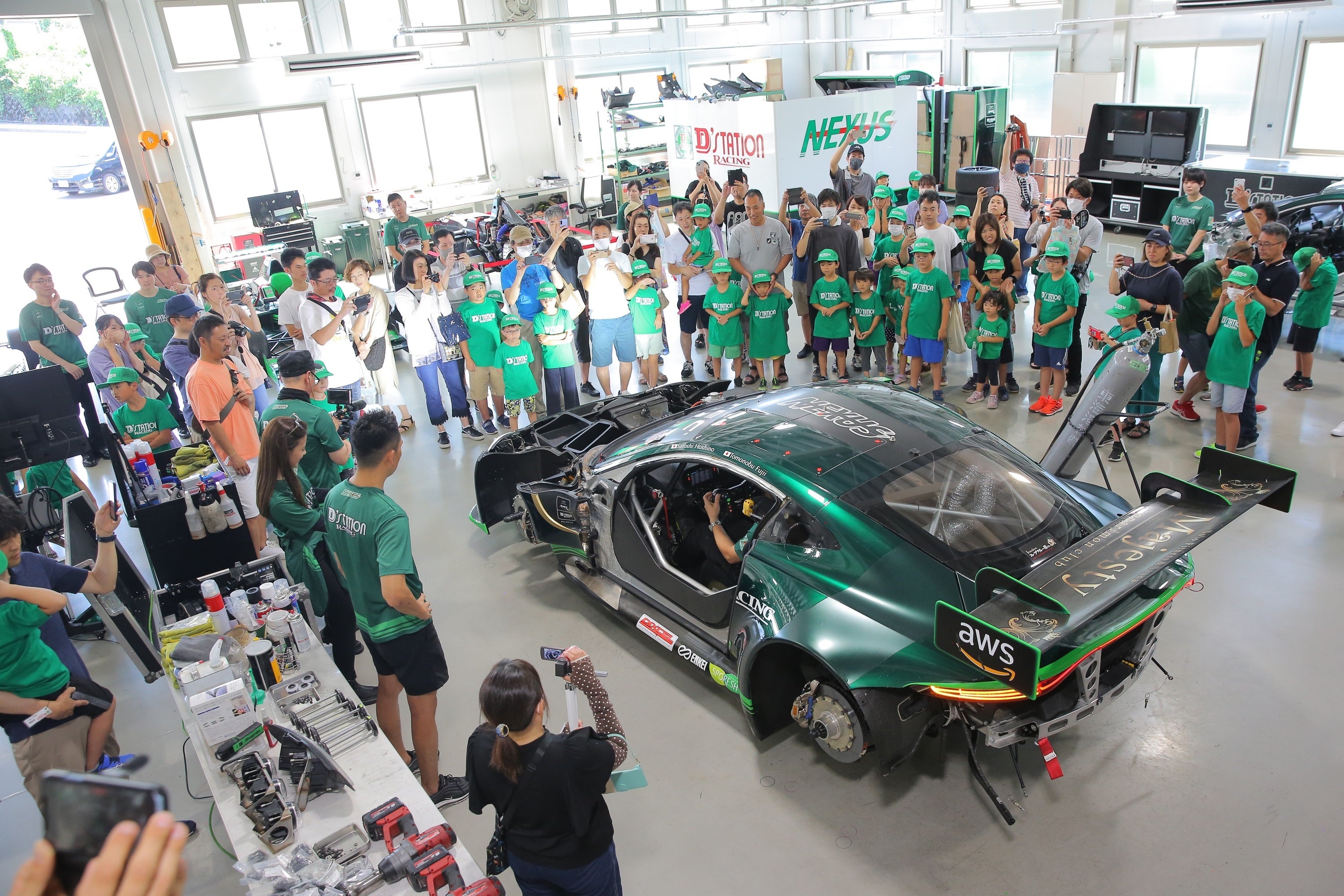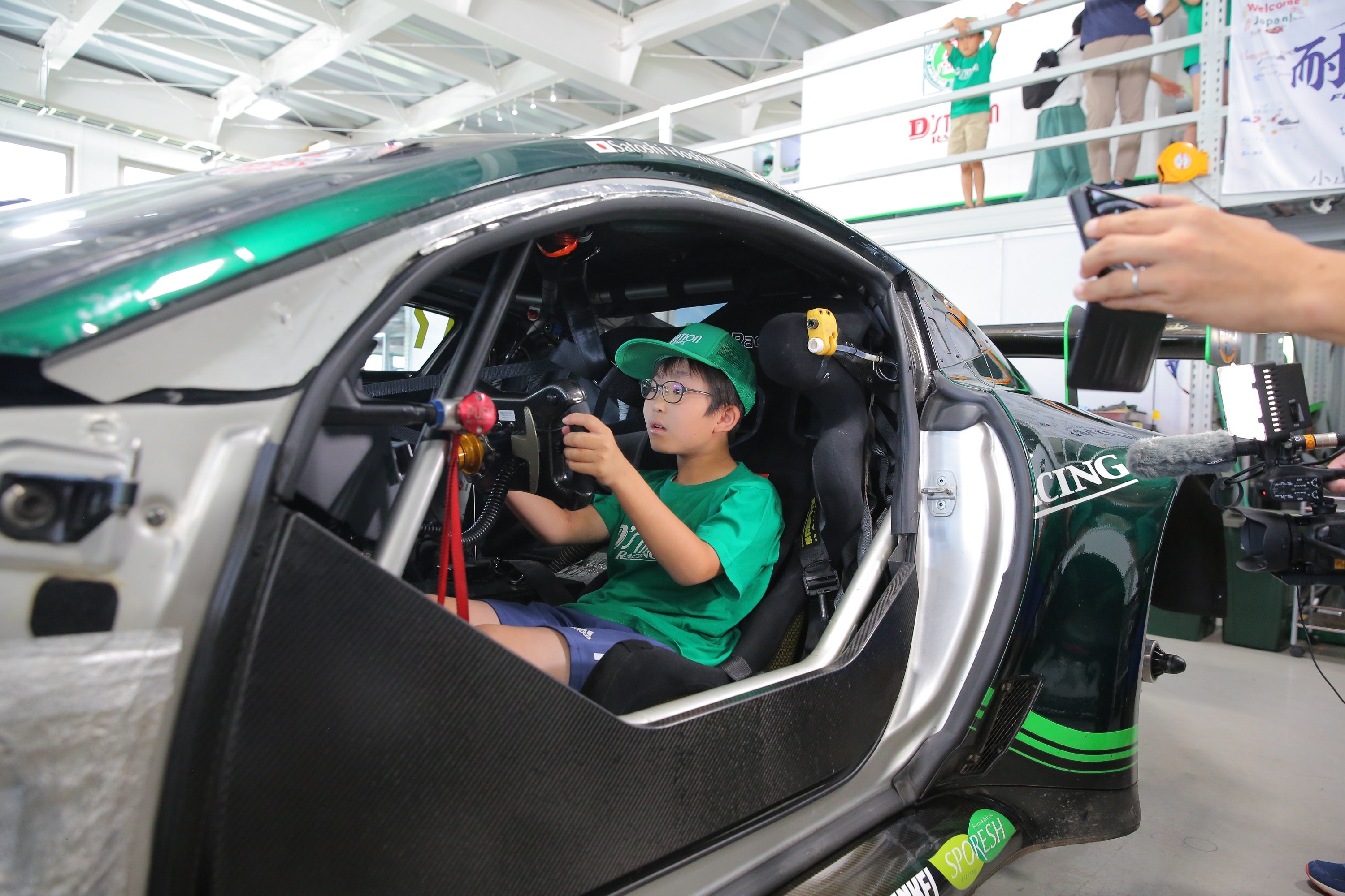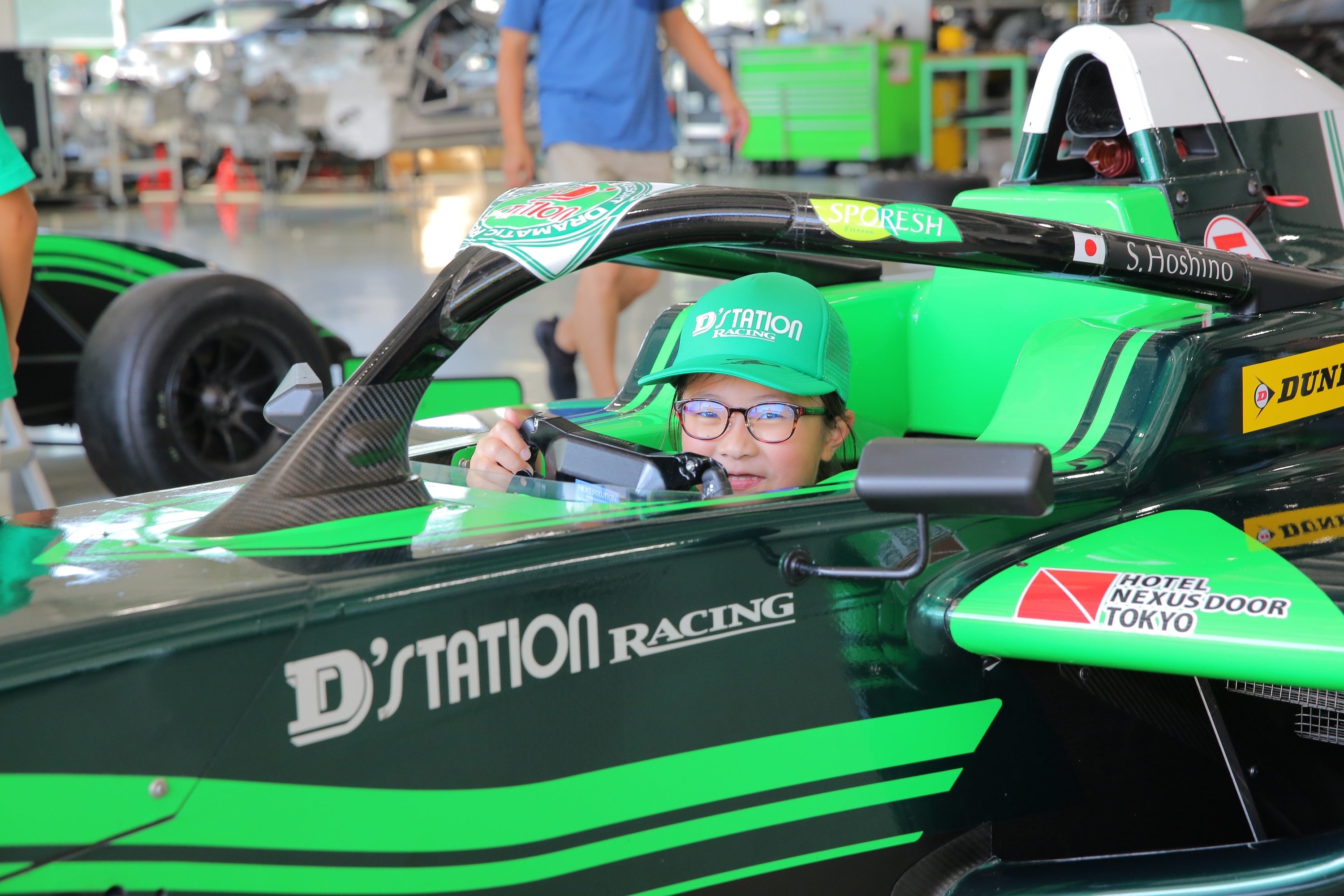 7月22日、23日に モビリティリゾートもてぎ で開催された、ファナテック・GTワールドチャレンジ・アジア・パワード・バイ・AWS 第4ラウンド で走行した #47 D’station Vantage GT3 を整備分解の段階でエンジンを掛けられる状態でキープ。子どもたちにレース車両の響くエンジンサウンドを披露しました。さらに数名のお子様には、エンジン始動体験にも挑戦していただきました。