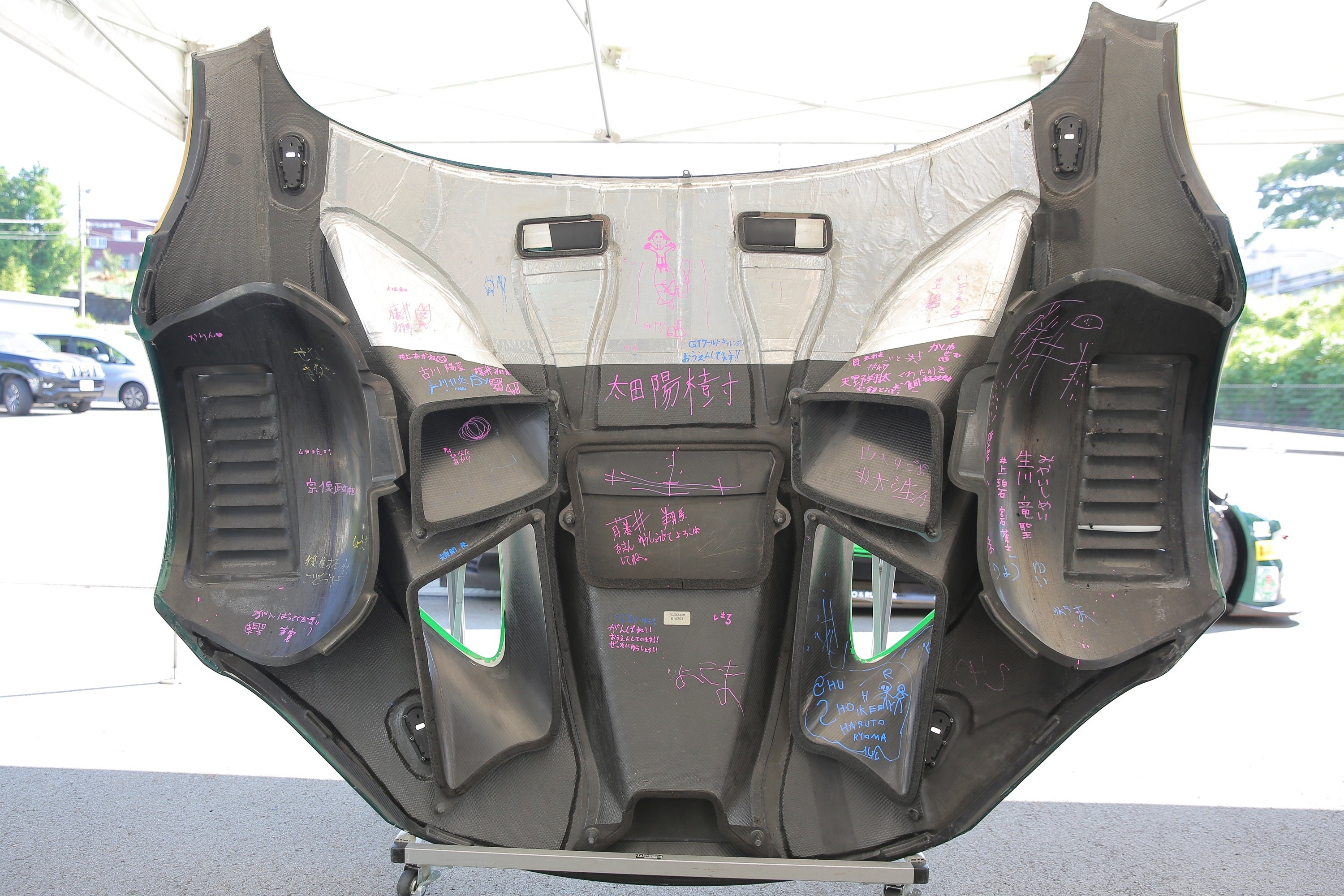 毎年の恒例でもある、ボディーカウル類やホイールの清掃を体験いただいたほか、本物のレーシングマシンに直に触れた経験が夏休みの思い出として刻まれ、レーシングマシンのボンネット裏には子どもたちの名前や応援メッセージを書いていただき、この想いを乗せたマシーンは次戦のレースを走行します。