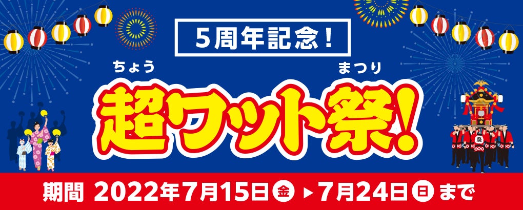 日頃から応援いただいている皆さまへ感謝の気持ちを込めて、2022年7月15日(金)〜2022年7月24日(日)の10日間限定で「5周年記念!超ワット祭!」を開催いたします。