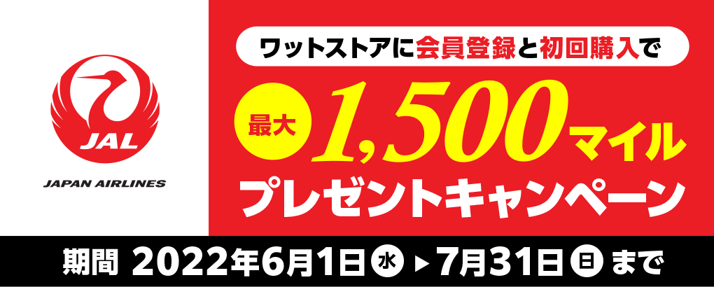 ワットストアに新規登録&購入で最大1,500マイルをプレゼントいたします。