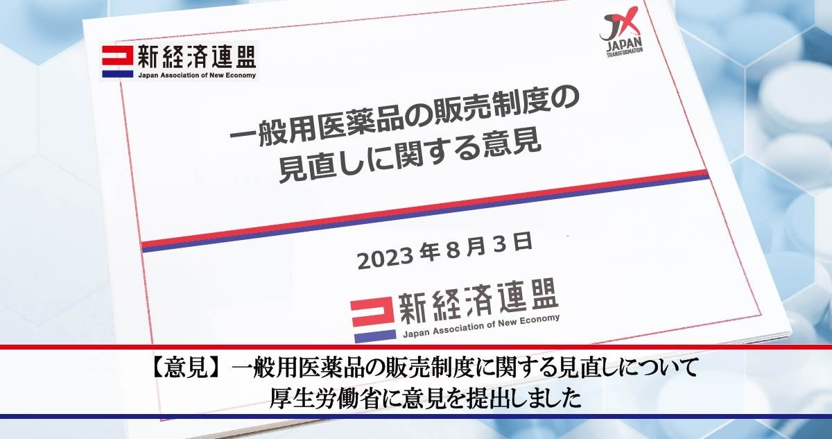 一般社団法人新経済連盟(所在地:東京都港区、代表理事:三木谷浩史)は、2023年8月3日、厚生労働省の「医薬品の販売制度に関する検討会」における一般用医薬品の販売制度に関する見直しの議論について、従来より対面原則の撤廃やデジタル化の推進を提言してきた経済団体として、厚生労働省に意見を提出しました。