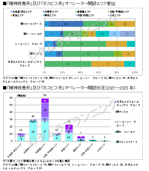 下記グラフでは、前項の訪問看護における「精神疾患系」及び「ホスピス系」オペレーター5社の事業エリアを見ている。