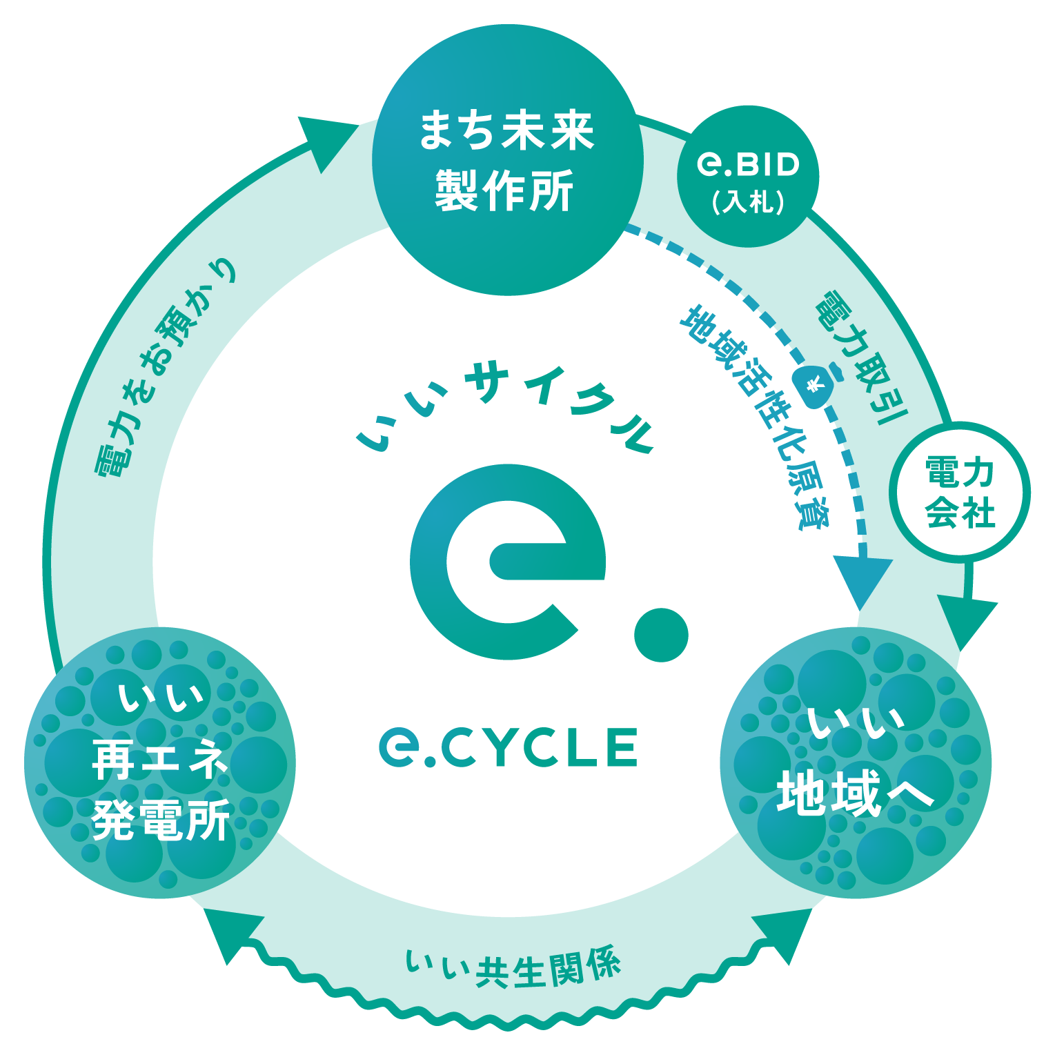 株式会社まち未来製作所は、環境ビジネスにおけるSDGsの実践・提案を牽引するエネルギーベンチャーとして2016年に設立。2020年に、再エネアグリゲーションプラットフォーム「e.CYCLE(いいサイクル)」を立ち上げ、現在全国20の地域へ導入。持続可能な公益的エコシステムのパイオニアを目指します。