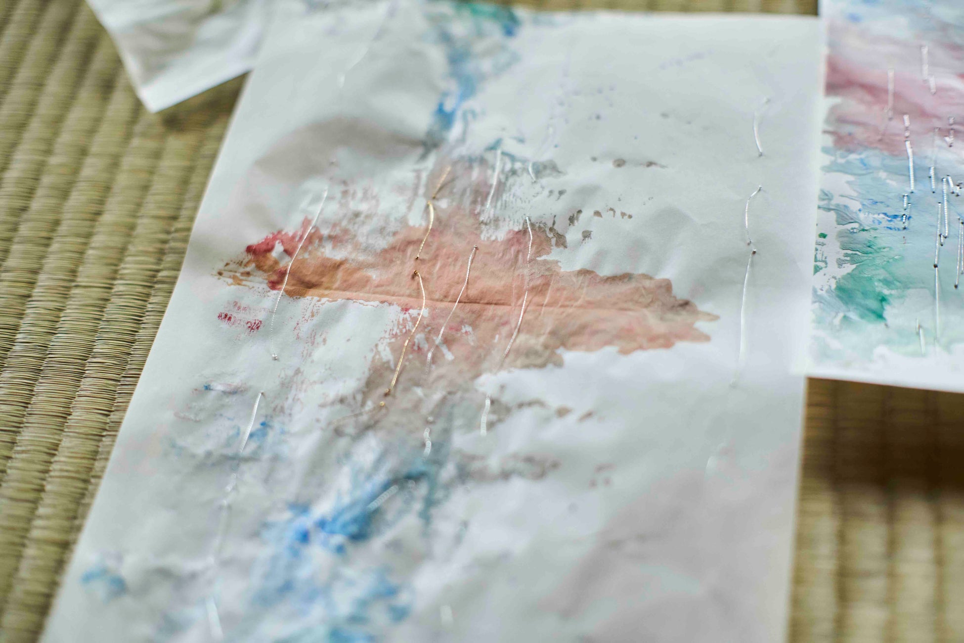 心動かされる自然の現象から着想し、デカルコマニーの技法を用いて表現する