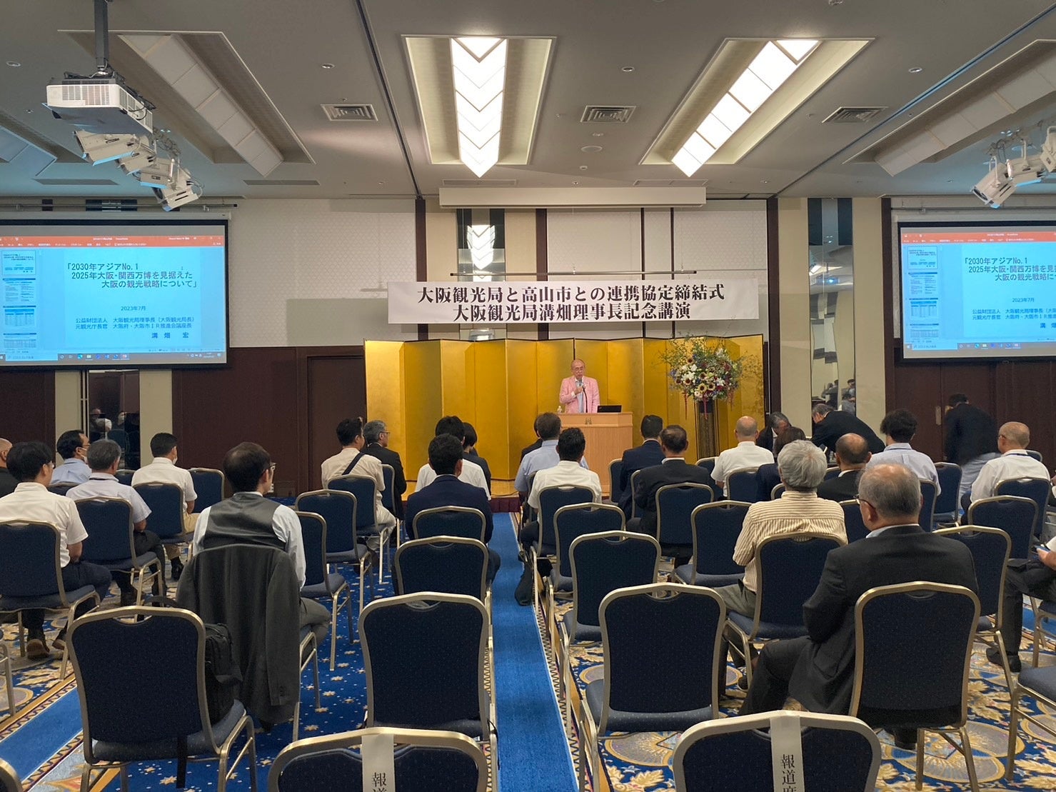 令和5年7月27日、高山市内にて、公益財団法人大阪観光局(所在地:大阪市中央区)と高山市との連携協定締結式が開催されました。