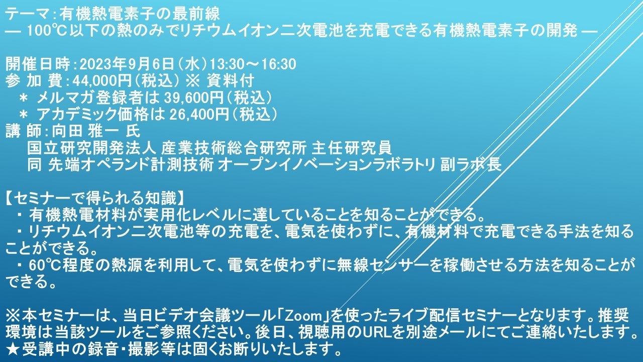 テーマ:有機熱電素子の最前線― 100℃以下の熱のみでリチウムイオン二次電池を充電できる有機熱電素子の開発 ―
