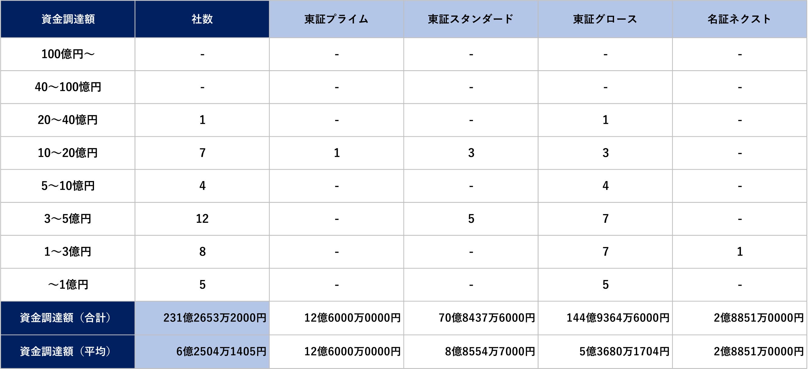 前年同期の資金調達額平均(16憶6178万円)と比較すると大幅に低下しています。
