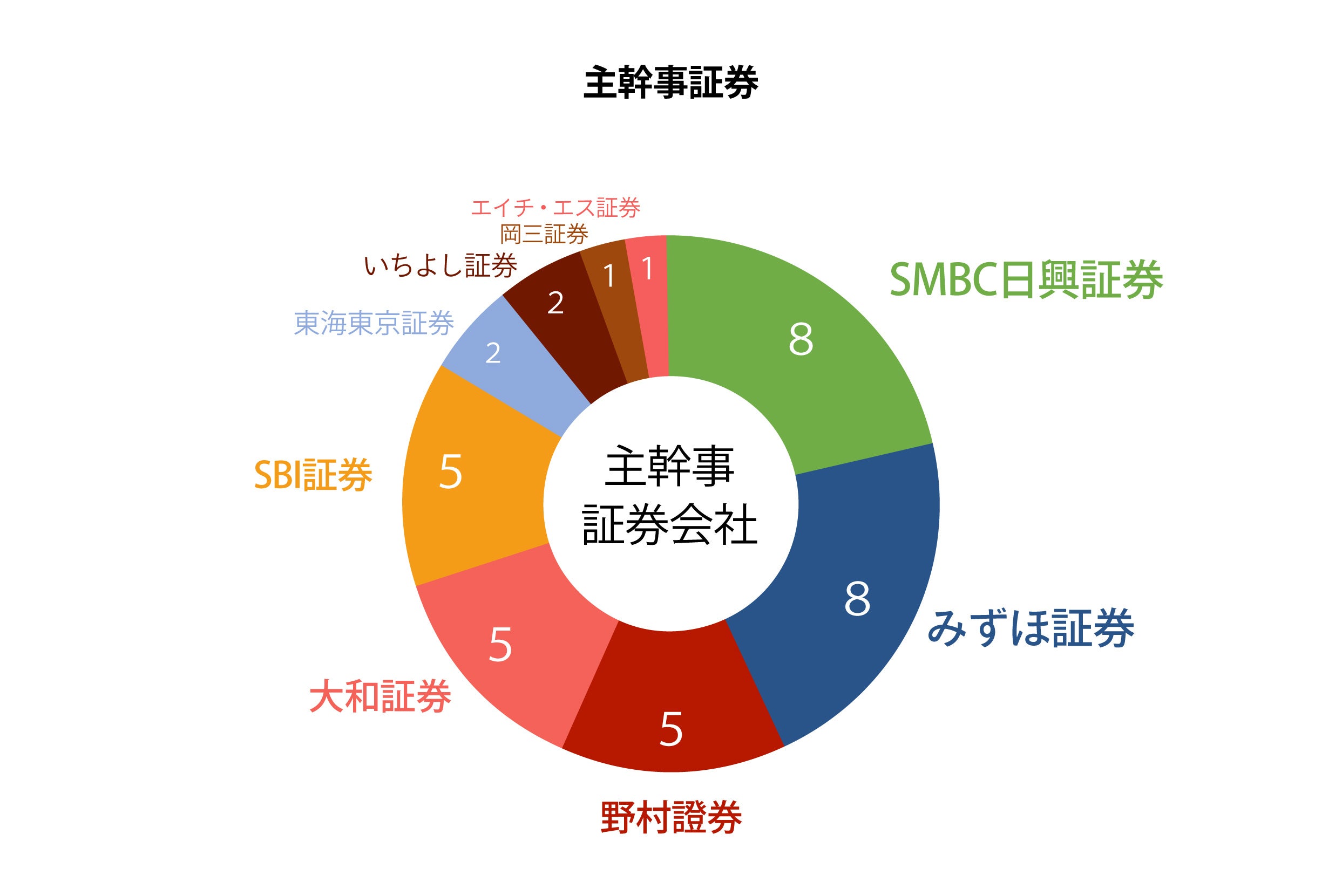 主幹事証券を含む幹事証券の平均者数は7.65社となりました。
