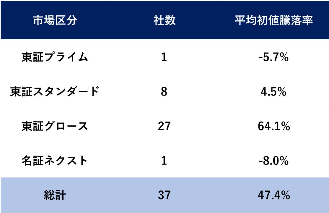 平均初値騰落率は47.4%で、前年(56.2%)と比べて8.8%減となりました。