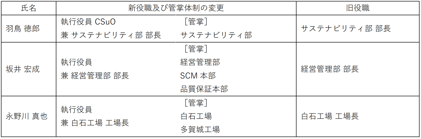 ■ 管掌体制への移行に伴う執行役員の人事(取締役兼務者を除き、異動者のみ)