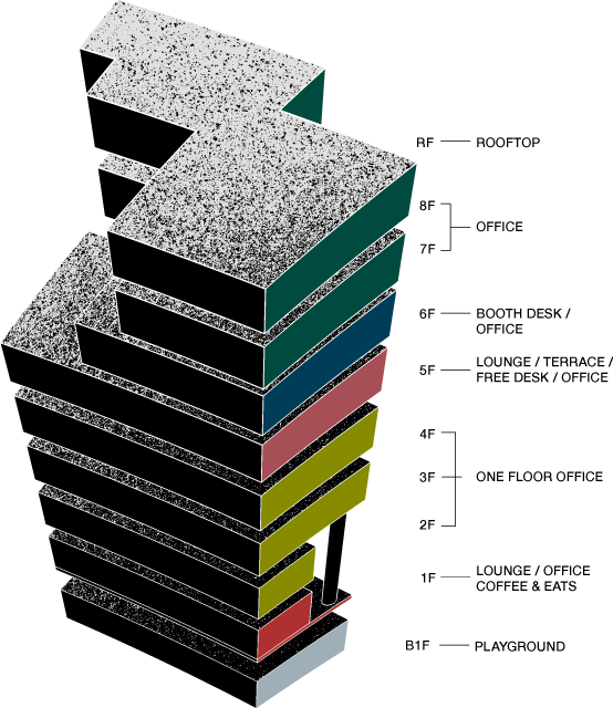 さらに、地下にはサービス店舗区画のほか、ダーツやビリヤードなどで遊べるラウンジも用意し、遊び心溢れる要素を組み込みました。