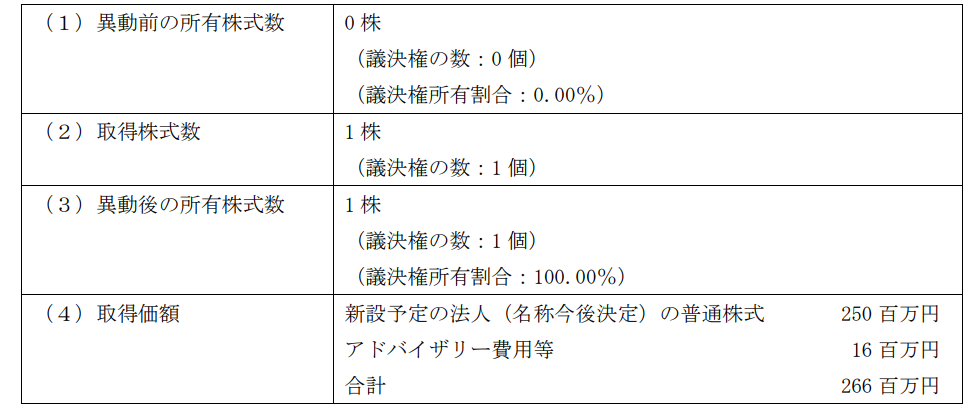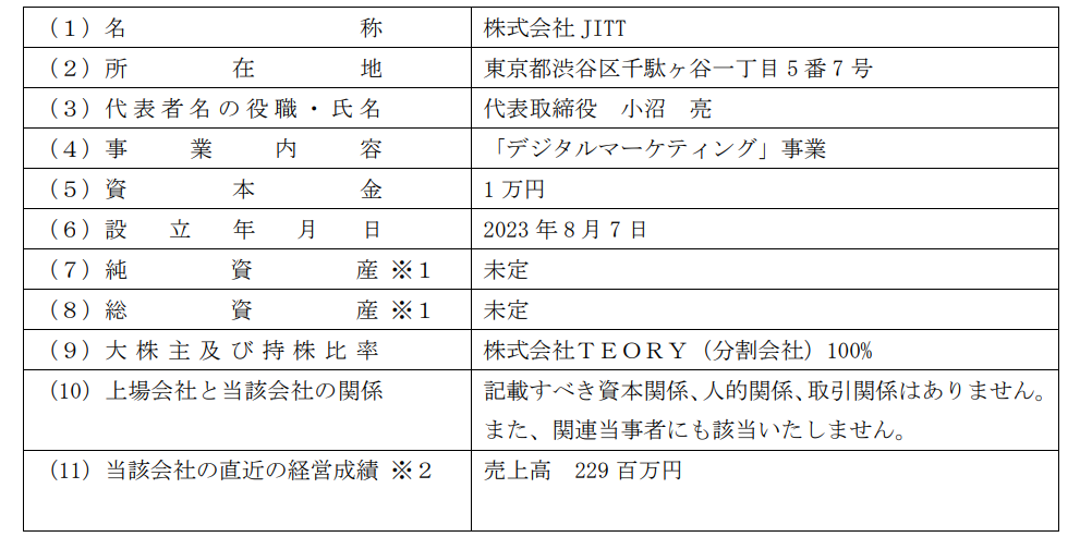 ※1新設会社の設立時の純資産、総資産は現時点で未定です。数値が定まった段階で開示を行う予定