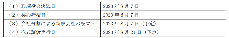 (注)相手先との間で事業譲渡前及び事業譲渡後の誓約事項と譲渡対価の調整に関する合意がなされており、当該事業の業績等の状況に応じて追加対価の支払いまたは取得対価の減額調整が発生する可能性があります。当該事象が発生した場合は、判明次第速やかにお知らせします。
