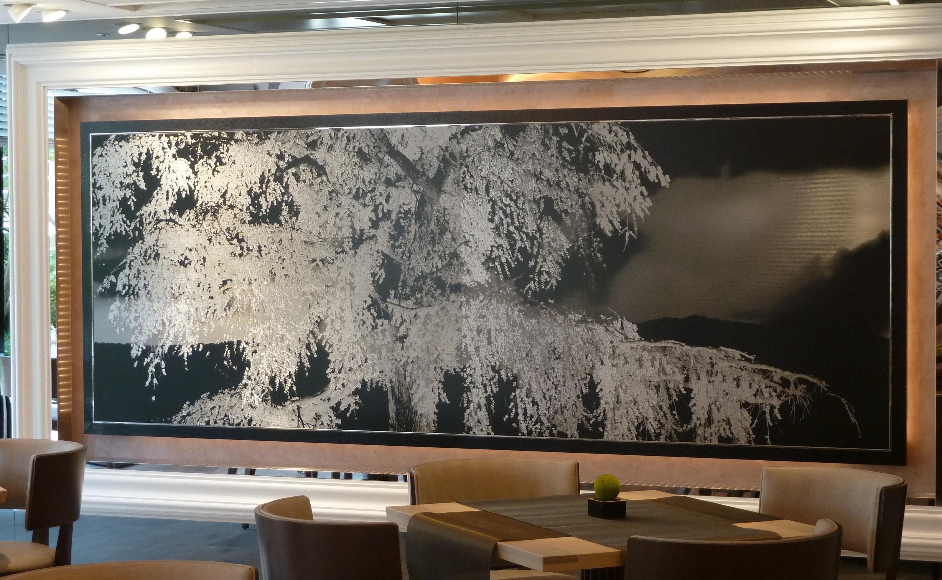 今回出展する刻鈑は、金属切削加工を用いて「見える事」を「感動」に強く結びつける商品です。写真画像やイラストレーターの線描を原画として、大きな壁面のデコレーションパネルを金属で製作します。