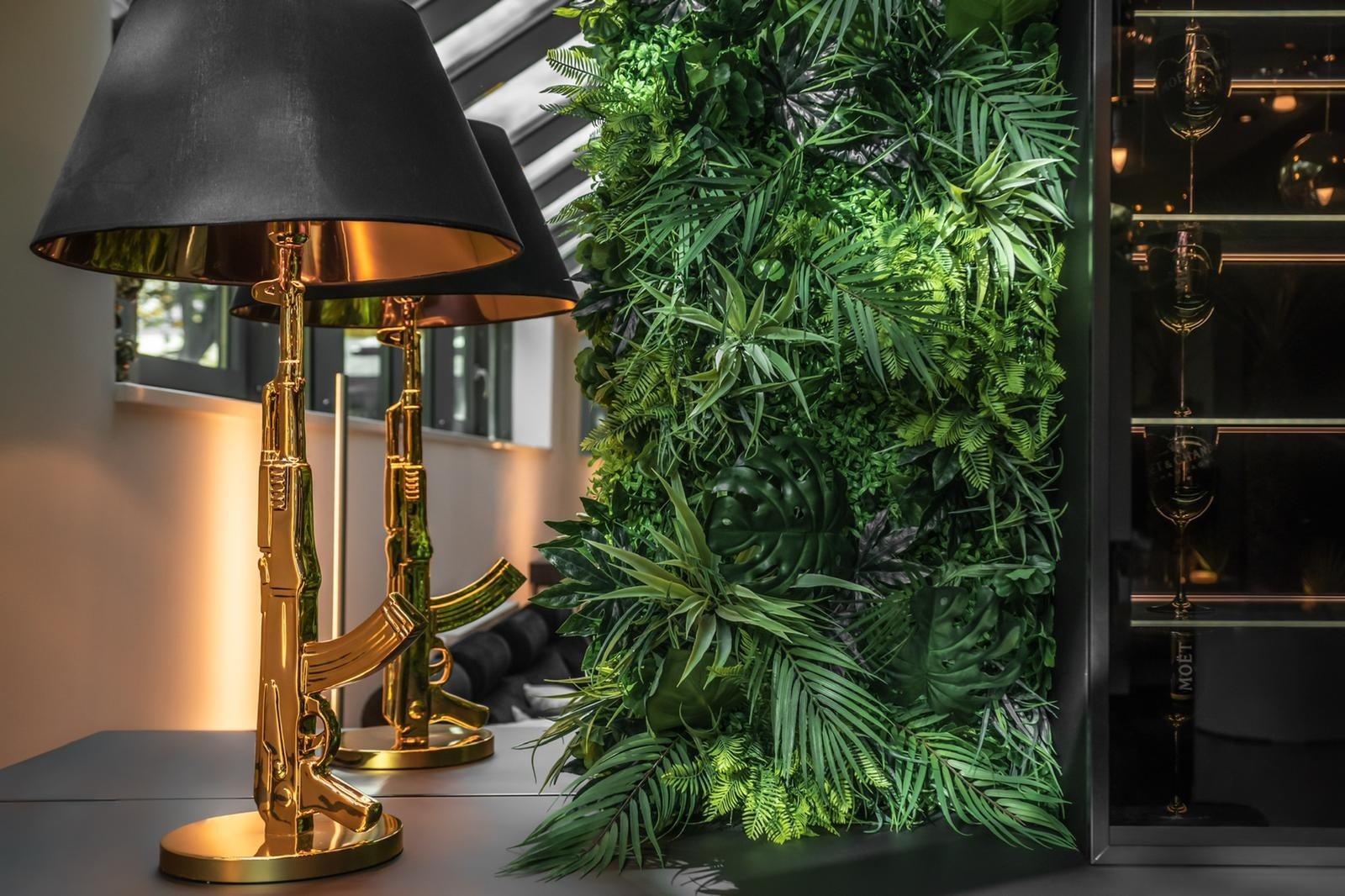出展商品のグリーンウォールは、室内や屋外の壁にフェイクグリーンを使ってデザインする人気のインテリアアイテム。住宅、店舗、商業施設、ホテルなどに幅広く活用されています。