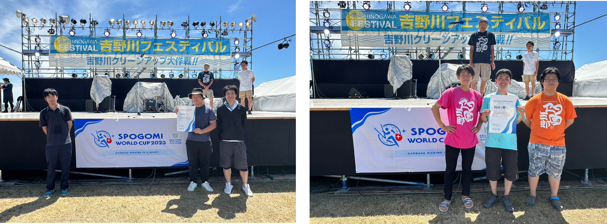 全15チームが参加した徳島 STAGE。徳島県の一大イベント『吉野川フェスティバル2023』開催のなか賑やかに行われた競技の結果、「カケヤ」は、ごみ総量8.175kg/1,026.0ポイントを獲得し、準優勝チームに28.8ポイント差をつけての優勝。参加チーム15チームのなかで唯一1,000ポイント以上を獲得し、堂々たる優勝を飾りました。2023年10月に東京で行われる予定のスポGOMI ワールドカップ 2023 日本 STAGEでも好成績が期待されます。