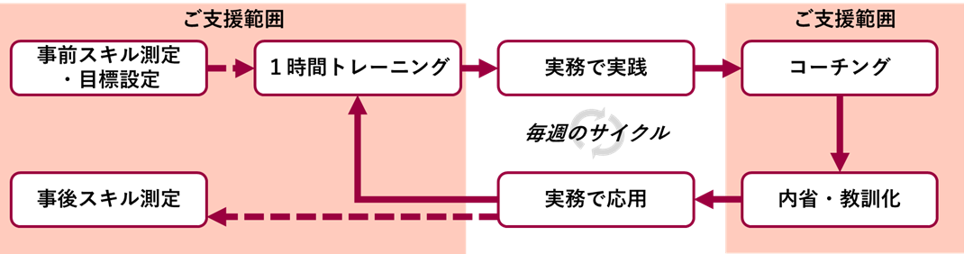 ■トレーニングと個別コーチングを組み合わせ、業務活用の橋渡しを行うことで学びを実務で使えるレベルまで支援